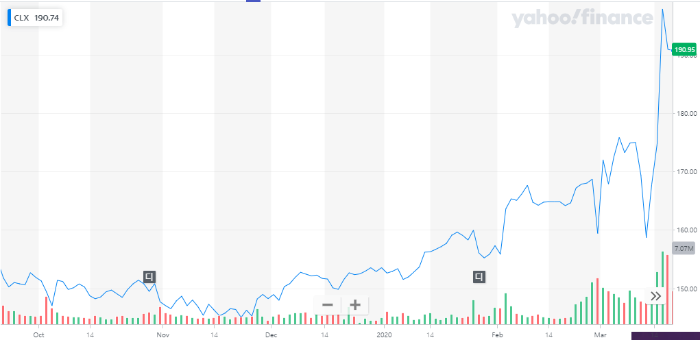 | 6 | CLX | Clorox | 13.57% | 194.2 | 3.18 | 0.02% | 208 | 171 |
