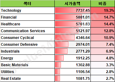 종목의 시각 총액뿐만 아니라, 섹터별 시가총액 역시 알아두면 대세 흐름을 파악하고 포트폴리오 구성할 때 유용합니다.