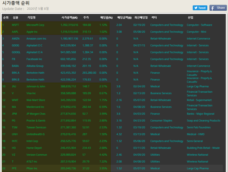 “규모의 싸움”, “크기가 중요하다”는 말은 투자에서 통용되는 말이며, 중요한 판단 기준이 중에 하나입니다. 모두들 투자하는 기업의 시가 총액이 얼마이며, 시장에 전체이나 동종 섹터에서 어떤 위치인지를 꼭 체크하는 습관을 가지셨으면 합니다. 오늘도 성투하시길!