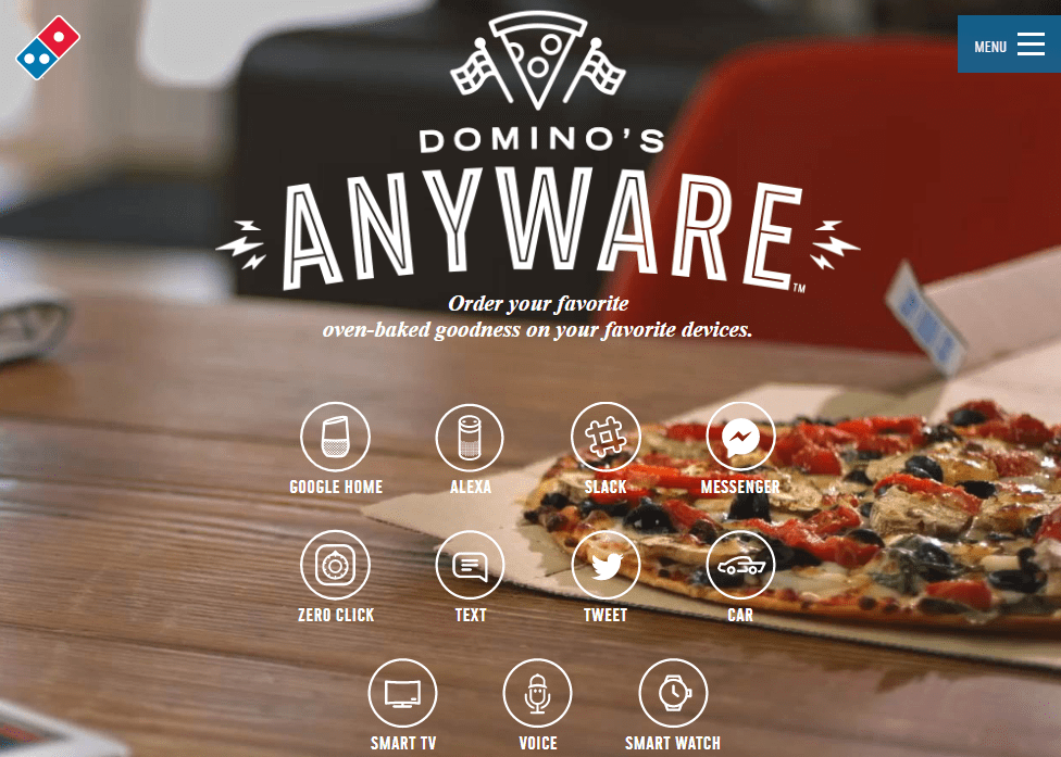 도미노피자는 피자 주문 방식을 강화하는데 집요하게 투자합니다. 2013년 인공지능 주문 시스템 돔(Dom)을 비롯해서 2015년에는 피자 이모티콘만 보내면 주문이 이루어지기는 주문 방식, 2016년에는 어떤 플랫폼에서도 도미노 피자를 주문할 수 있도록 해야한다는 목표로 애니웨어(AnyWare) 캠페인을 진행하면서 주문 방식이 대폭 강화됩니다. 전화는 물론, 트위터, 페이스북 메신저, 스마트워치, PC, 태블릿, 자동차, 삼성TV리모콘, 돔, 알렉사(아마존의 음성인식 비서), 구글 ‘홈’까지.트위터, 페이스북 메신저, 스마트워치, PC, 태블릿, 자동차, 삼성TV리모콘, 돔, 알렉사(아마존의 음성인식 비서), 구글 ‘홈’까지 주문이 가능해지게 됩니다.